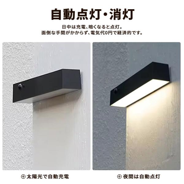ソーラー 人感センサー ウォールライト 明るい 1000ルーメン 長方形 屋外 防水 おしゃれ led ガーデン 防犯 玄関灯 照明 対策 充電式 壁面 庭 電光ホーム