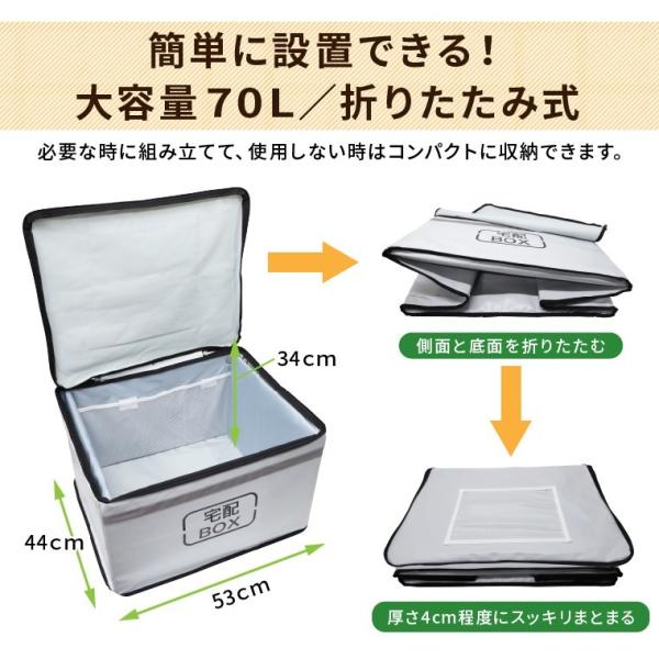 宅配ボックス 折りたたみ 一戸建て用 70L 大容量 屋外 大型 防水 マンション おしゃれ ポスト コンパクト 置き配 盗難防止 ワイヤー 鍵付き