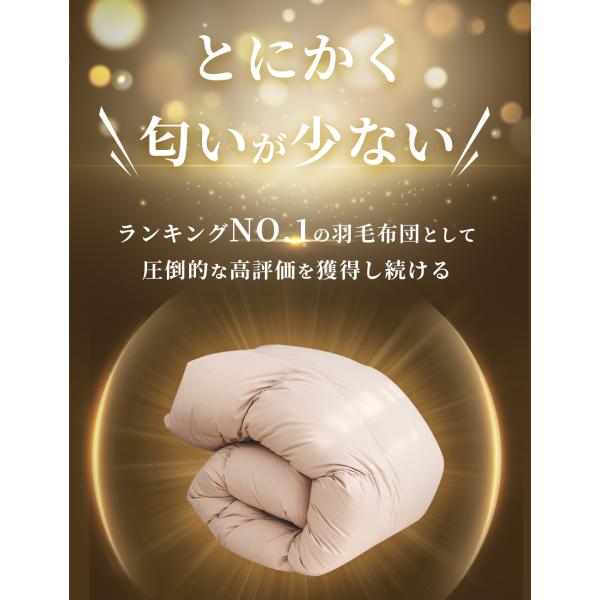 ・こちらの羽毛布団はコンパクトでお届けしておりますので、 輸送時にケース内で通気性が悪い状態になりやすく、『匂い』がする場合があります。