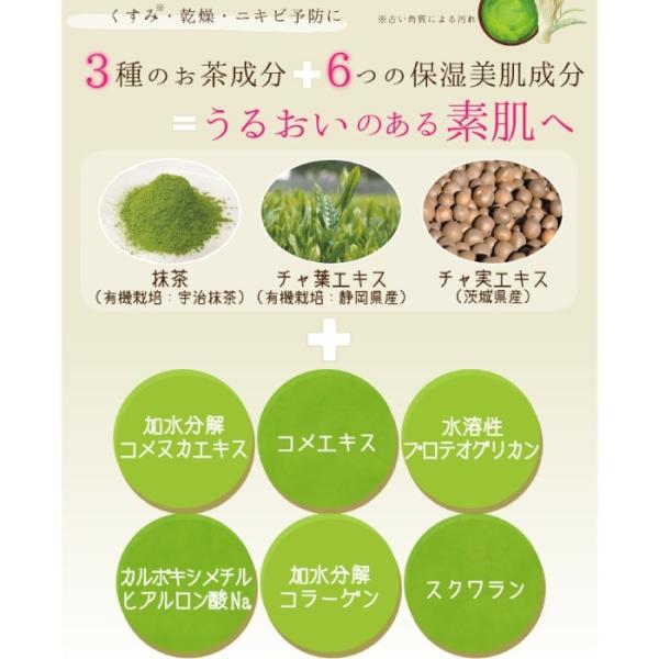 3種のお茶成分と6つのうるおい保湿成分配合です。