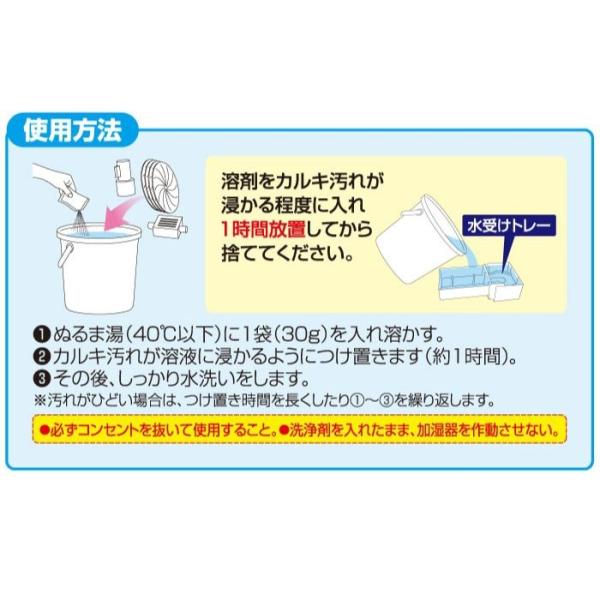 カルキ汚れを洗浄し、加湿器を常にキレイに保てる加湿器洗浄剤です。