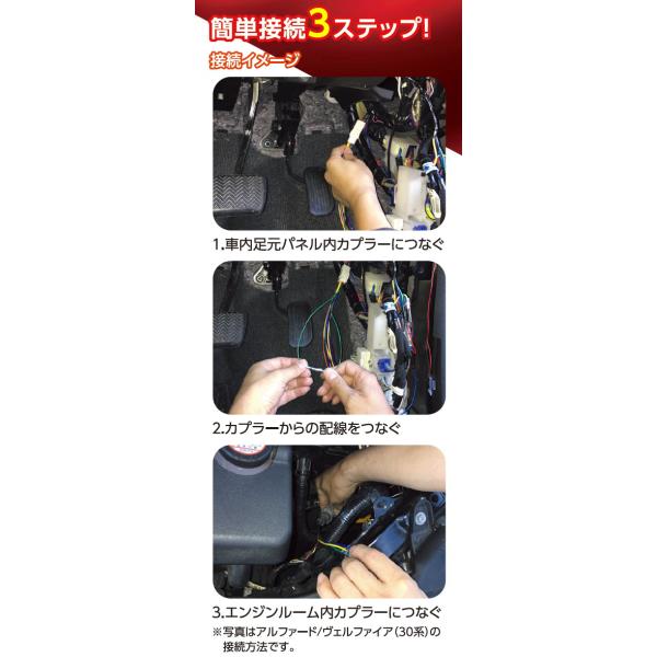 車内からエンジンルームへ配線を引き回す必要がないため、今まで面倒だった電源取り出しが簡単にできる便利アイテムです。
