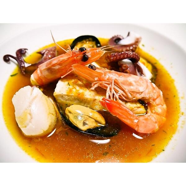 小魚から取ったスープは絶品です!【内容量:1人前 魚 ホタテ 有頭海老 タコ のサフラン風味のスープ仕立て】
