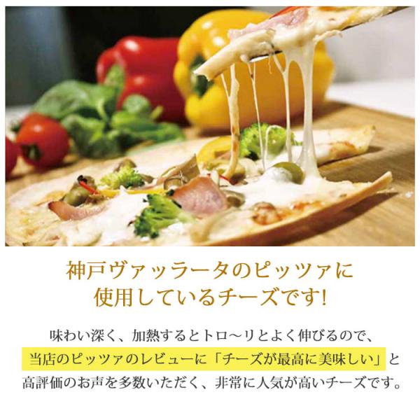 味わい深く、加熱するとトロ〜リとよく伸びるので、当店のピッツァのレビューに「チーズが最高に美味しい」と高評価のお声を多数いただく、非常に人気が高いチーズです。