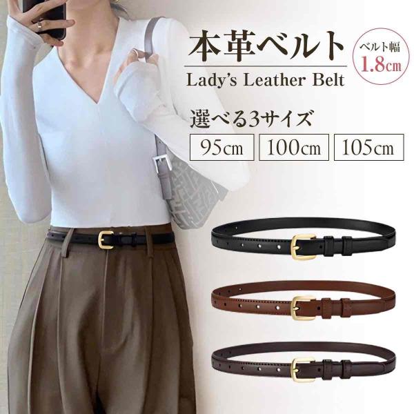 ベルト レディース 本革 細い ビジネス カジュアル おしゃれ レザー ジーンズ 軽量 調整 フォーマル 牛革 95cm 100cm 105cm ゴールドバックル 高校生