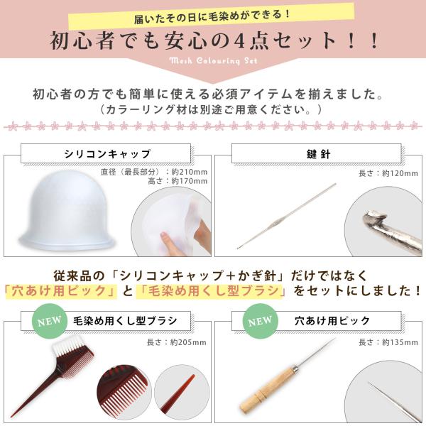 届いたその日に使える 自宅でできる メッシュカラー 4点セット!プロ直伝のイラストガイド付きだから、セルフカラー が初めての方でも迷わずご使用いただけます。