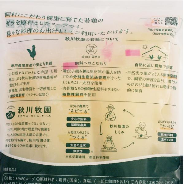 【人気商品】 鶏ガラ 無添加 秋川牧園 とてもまじめなとりがらスープ 50g×5本入 5袋 送料込 液体 冷凍 味付けは鶏ガラと塩だけ 小分けなので使いやすい