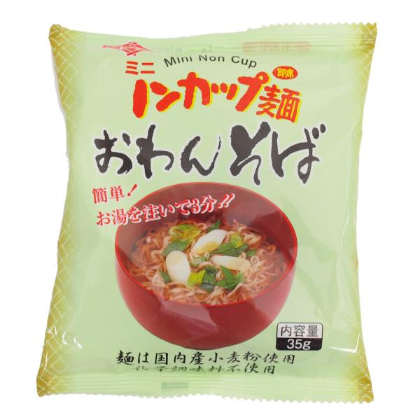国産小麦100%使用の、無添加ミニノンカップ麺のセット。お手持ちのおわんに麺とスープを入れ、お湯を注いで3分待つだけで召し上がれます。少量のおわんサイズで、あと一品欲しい時や、お弁当の添え物として、あると便利です。