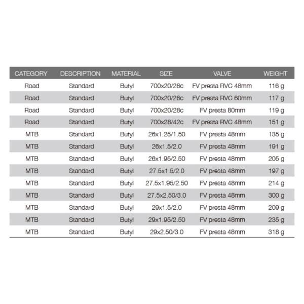 スタンダードブチルチューブは0.9mmの肉厚で、耐パンクに優れています。
