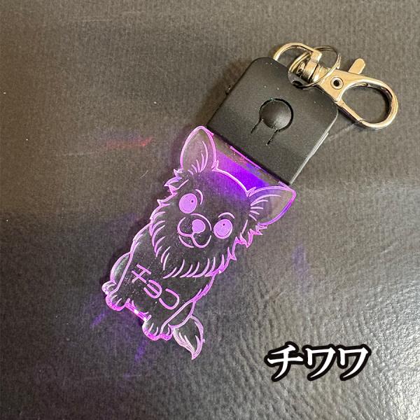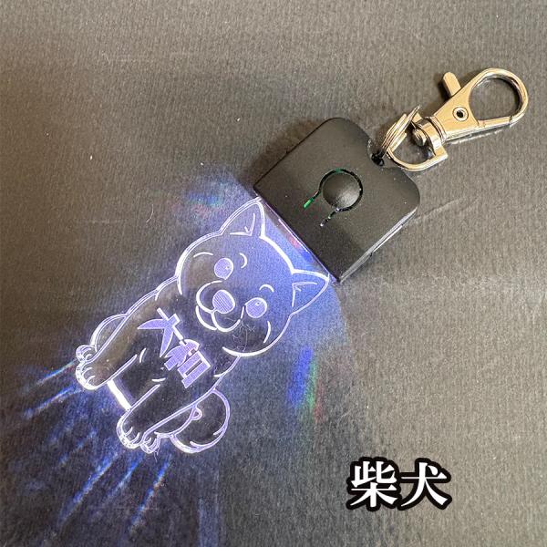 犬 キーホルダー 光る LED ペット おしゃれ ライト お散歩 夜 ネームプレート 名札 名入れ 刻印 ギフト プレゼント かばん リュック