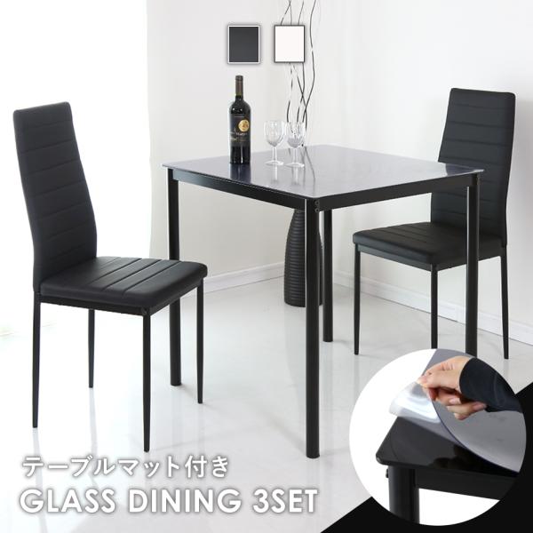 ダイニングテーブルセット 2人用 おしゃれ 3点 テーブル ガラス天板 イス ダイニングセット レイブン3点セットnew モダン ドリス