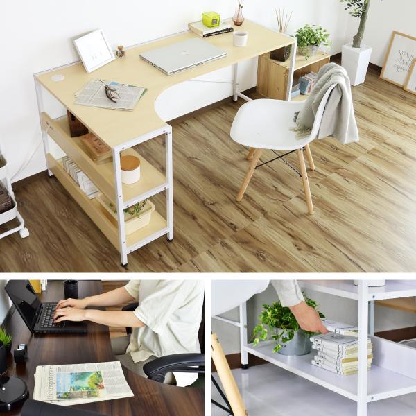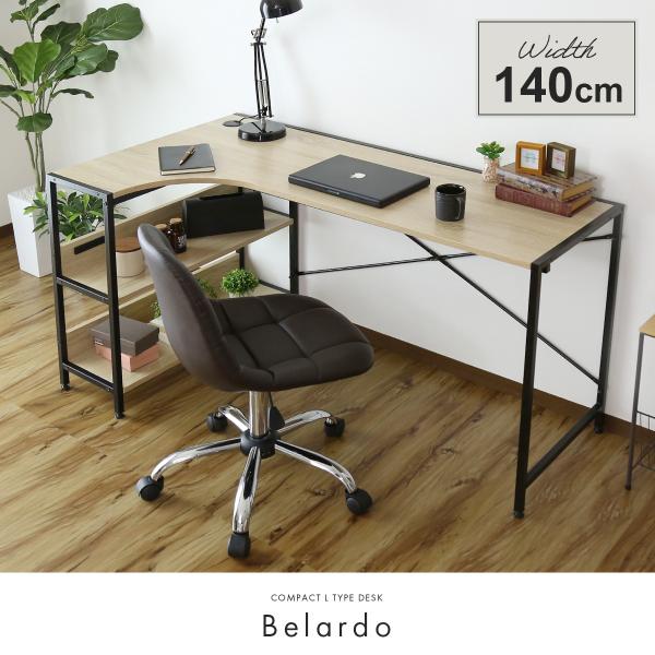 デスク pcデスク パソコンデスク 140cm L字型 パソコン 収納一体型 学習机 勉強机 収納 棚 ラック付き 北欧 ベラルド