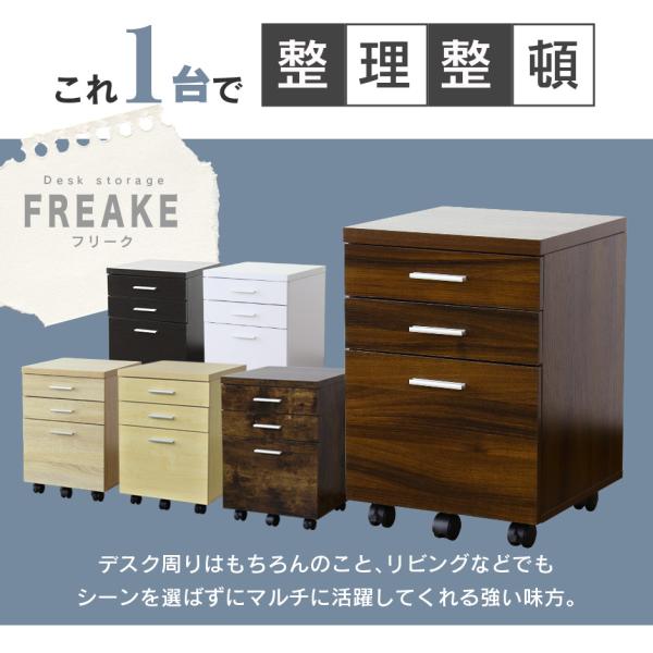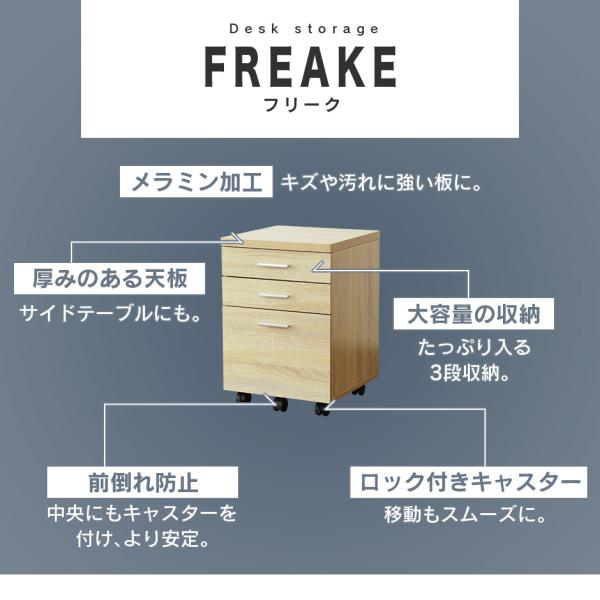 デスクワゴン サイドワゴン サイドチェスト キャスター付き キャビネット 3段 収納 パソコン A4対応 フリーク 北欧 プレゼント ドリス