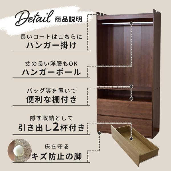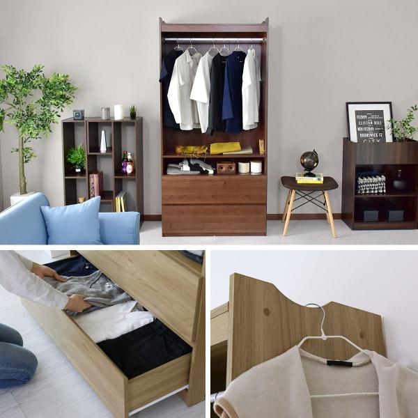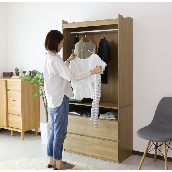 ハンガーラック クローゼット 収納 衣類 幅90cm ワードローブ 引き出し収納 ゴスティ90 北欧 ドリス