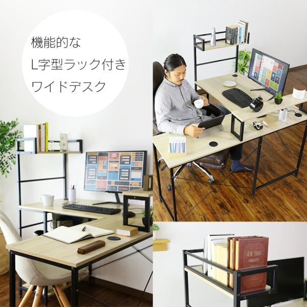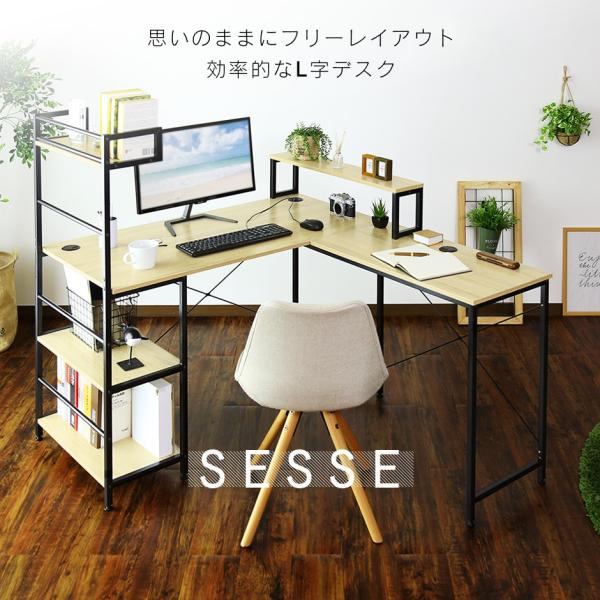 パソコンデスク 収納付き デスク 一体型 ラック付き L字型デスク 木目調 幅122 学習机 PCデスク ハイタイプ 勉強机 セス