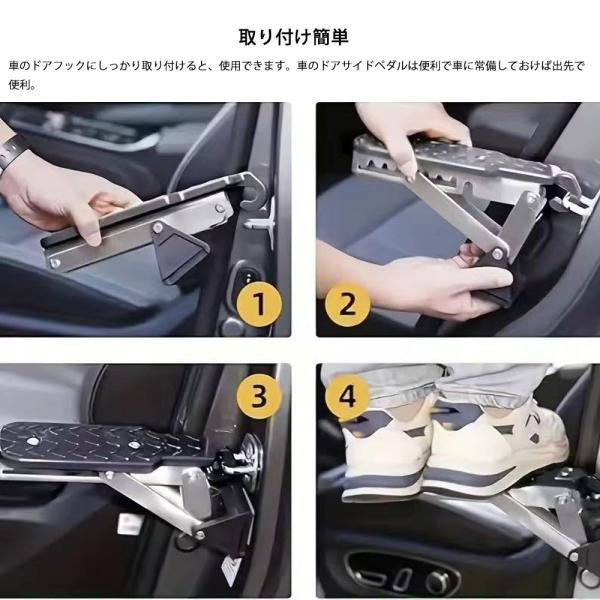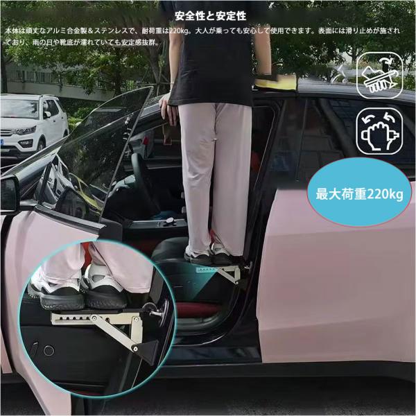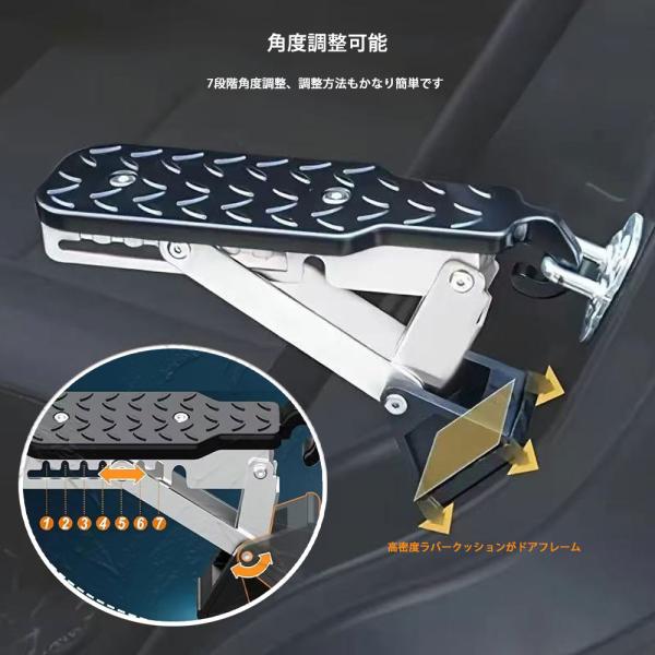 車用ドアステップ車用サイドステップ 車用ドアペダル 7段階角度調整 車体に傷つかない 折りたたみ式 洗車補助 SUV、Jeep、RVS、軽トラックなど 最大荷重220kg