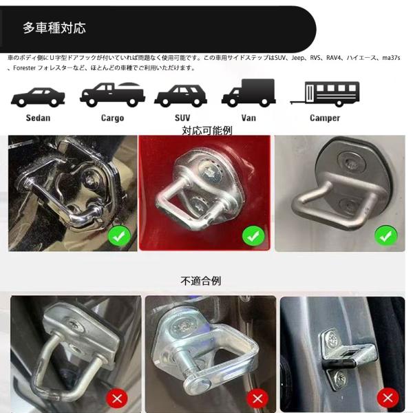 【適用車種】ほとんどの車種でご利用でき(軽自動車、SUV、セダンなど)、スライドドアには適合しませんをご承知おきください。