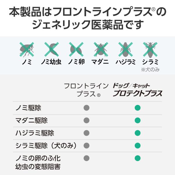 ドッグプロテクトプラスは犬に寄生するノミ、マダニ、シラミ及びハジラミを駆除します。