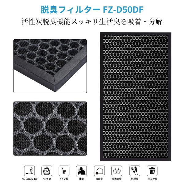 シャープ 集じんフィルター FZ-D50HF 脱臭フィルター FZ-D50DF FZ-F50DF シャープ加湿空気清浄機 KC-F50 KC-D50 KC-500Y6 KI-GS50交換用 (互換品/1セット)