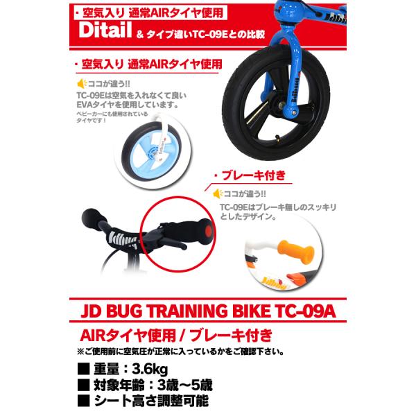 キックバイク ランバイク ランニングバイク トレーニングバイク ペダルなし自転車 子供用 子供 キッズ TC-09A JD BUG 後付けペダル 自転車 エアタイヤ
