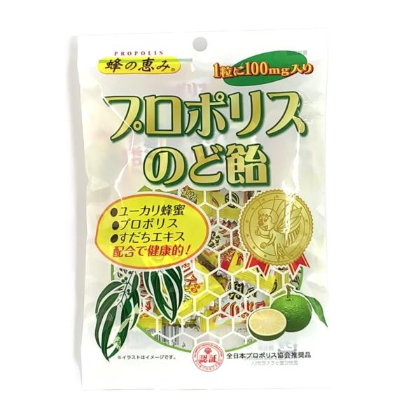 プロポリスのど飴 80g 個包装 ブラジル産プロポリスエキス 1粒に100mg ブラジル産ユーカリはちみつ配合 すだちエキス のど飴 サンフローラ