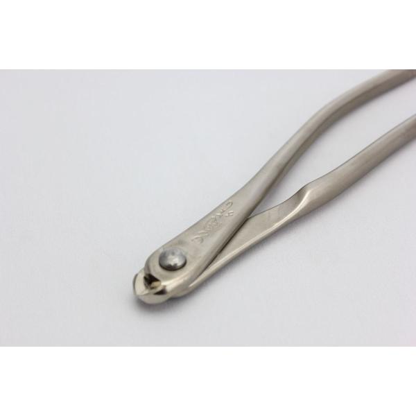 従来のメッキ製法とは異なる特殊な表面処理により、鍛え抜かれた最高峰のスエーデン鋼製の表面に、耐蝕性に優れた金属を生成させた白染仕上げは、付着した樹液等の汚れも水で拭くだけで簡単に落ちます。濡れた手で扱ってもサビることはありません。