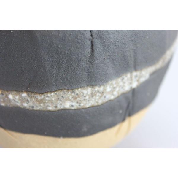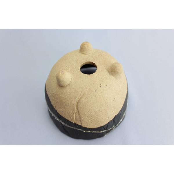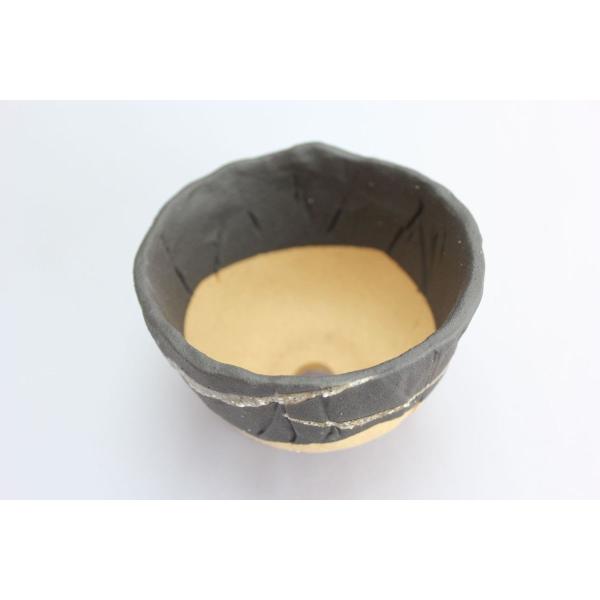 信楽焼の盆栽用の器です。黒色の下地に、紋様を描いた、強い印象の残る、器です。特徴のある器で、盆栽を印象深いものにします。サイズ情報…幅11cm×高さ8cm