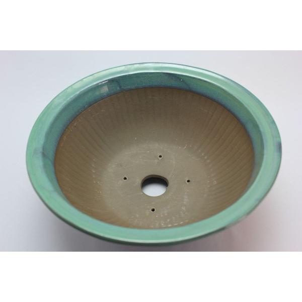 四日市萬古焼の盆栽鉢です。萬古焼は耐久性に優れており、古くから盆栽用の鉢として使用されています。その評価は現在でも高く、経済産業大臣から伝統工芸品に指定されています。釉薬を使用した光沢のある表面、シンプルな形ながら印象深い作品です。大品にご使用いただけます。サイズ情報…幅26cm×高さ11.5cm