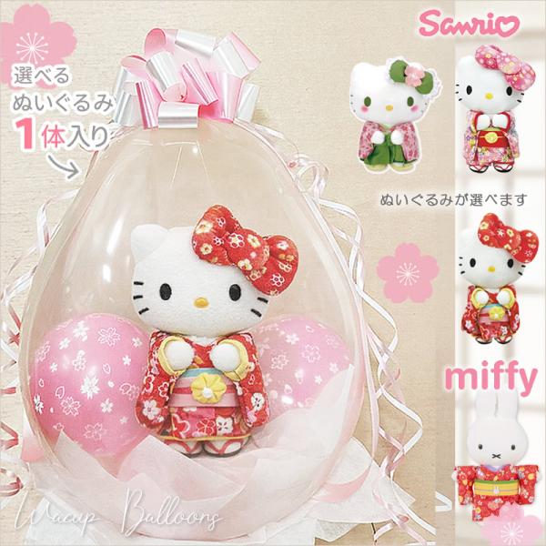 合格 入学 卒業 結婚式 電報 プレゼント 初節句 ひな祭り キティ マイメロ クロミ 誕生日 ぬいぐるみバルーンラッピングギフト:選べる着物ぬいぐるみ<桜満開>