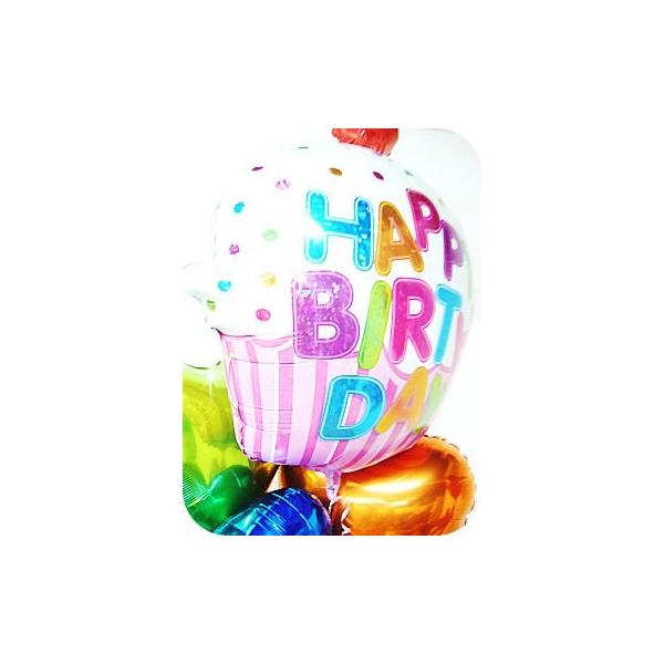 誕生日 バルーン ケーキ バースデー 風船 女の子 パーティー お誕生会 飾り付け ギフト 贈り物 装飾 電報 誕生日ピンクカップケーキ キャンディ6バルーンセット