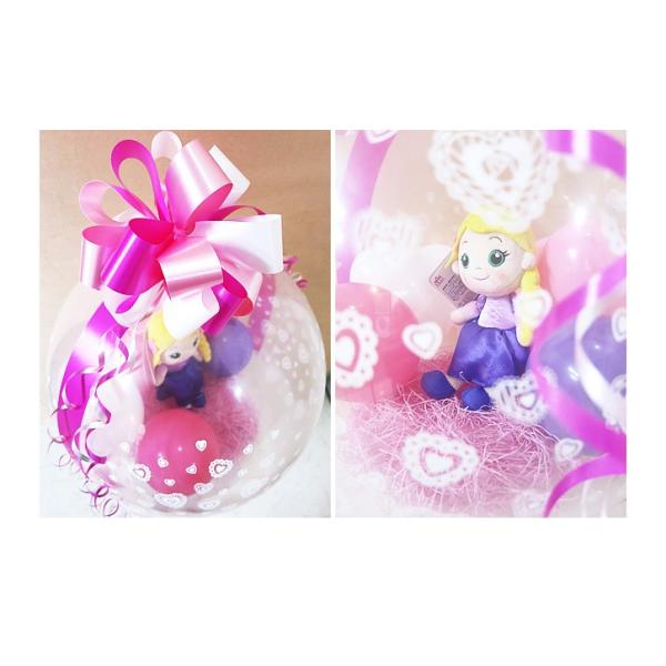 女の子の憧れ、ディズニープリンセスのぬいぐるみをバルーンの中に入れてキュートにラッピング♪