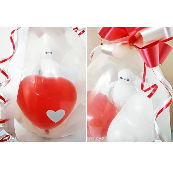 ベイマックス 結婚式 電報 ぬいぐるみ バルーン プレゼント 贈り物 誕生日 入学 卒業 合格 ぬいぐるみバルーンラッピング ベイマックスビーンズ<赤白ハート>
