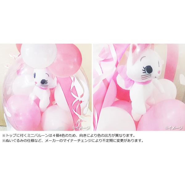 透明なバルーンの中には、選べるディズニーキャラクターのぬいぐるみと、ピンク系ミニ風船が詰め込まれたキュートなデザインが特徴。