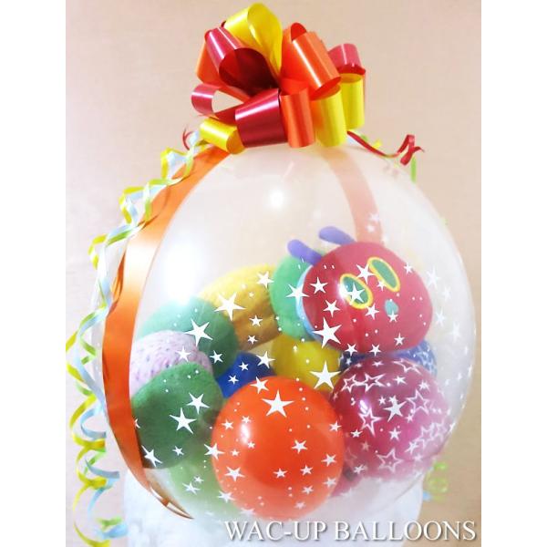 はらぺこあおむし 出産祝い 1歳誕生日 結婚式 プレゼント 贈り物 バルーン電報 ぬいぐるみバルーンラッピング:はらぺこあおむし(ネックサポート)