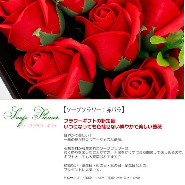 赤薔薇はソープフラワーで石鹸の材料で作られており、本物のお花と見間違えるほど繊細にリアルに作られます。そしてほのかにアロマが香る華やかな新しいタイプの造花です。