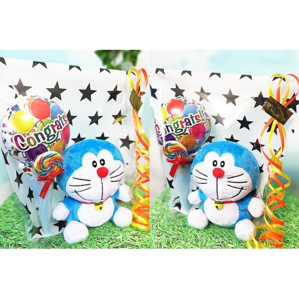 ドラえもん バルーン ブーケ 入学 卒業 入園 卒園 お祝い 電報 誕生日 プレゼント ぬいぐるみ ドラえもん&選べるミニバルーン&キャンディペン3点ギフトM