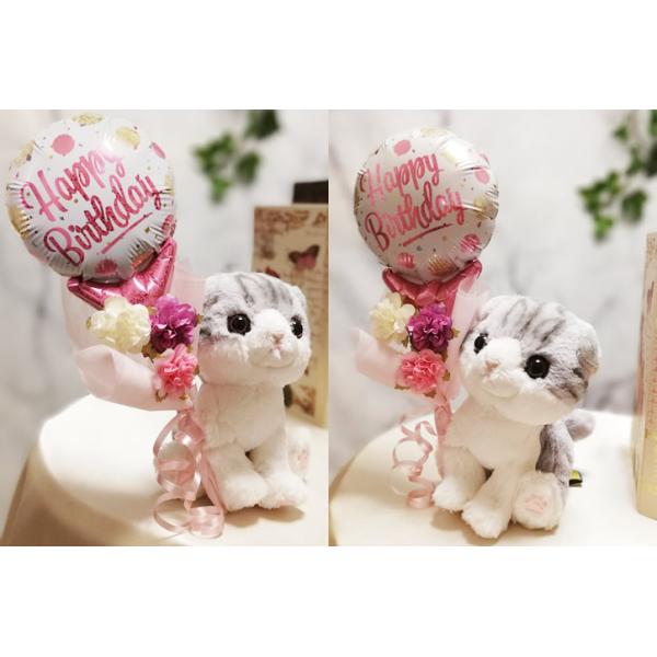 誕生日 プレゼント 花束 バルーン電報 ネコ スコティシュ ブーケ アメリカンショート ラグドール 誕生日ピンクドット ミニバルーン花束付ぬいぐるみキトン