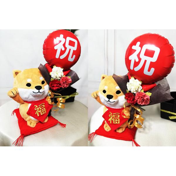 招き 開運 柴犬 フレンチブル 白猫 黒猫 文鳥 サクラ文鳥 ブーケ 結婚式 誕生日 記念日 入学卒業祝 開店祝 祝紅白ミニバルーン花束付まねきぬいぐるみMセット