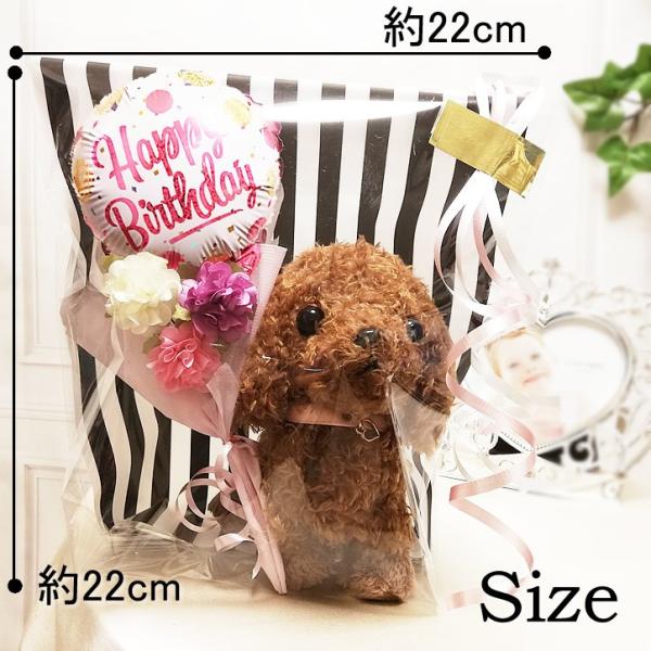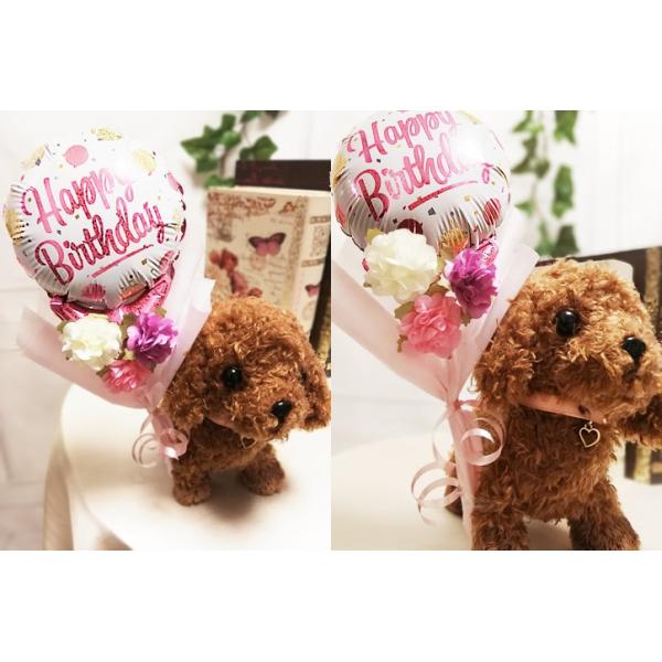 誕生日 プレゼント 花束 バルーン電報 犬 チワワ トイプードル ミニチュアダックス ポメラニアン レトリバー 柴犬 誕生日ピンクドット花束付ぬいぐるみPUPS