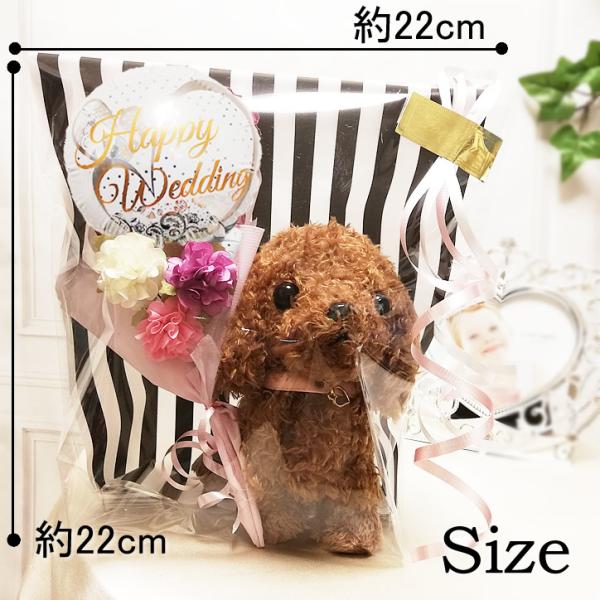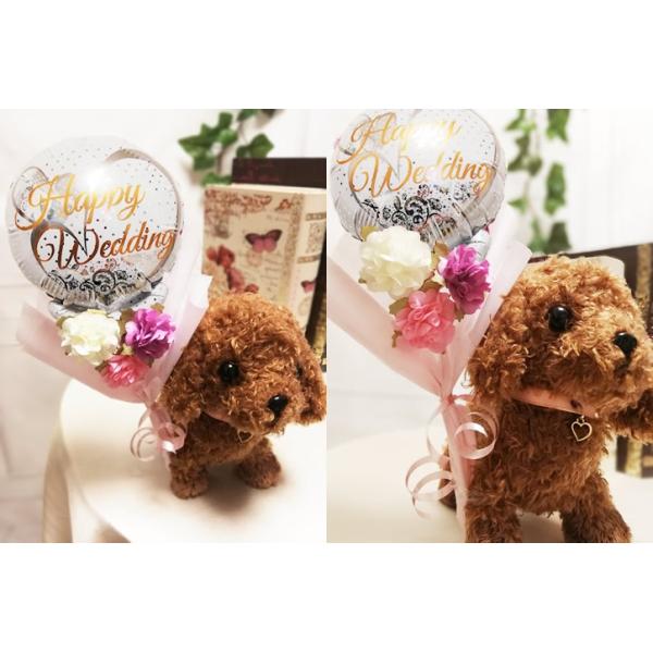 結婚式 バルーン電報 花束 犬 チワワ トイプードル ブーケ ダックス ポメラニアン ゴールデンレトリバー 柴犬 結婚式レースホワイト花束付ぬいぐるみPUPS