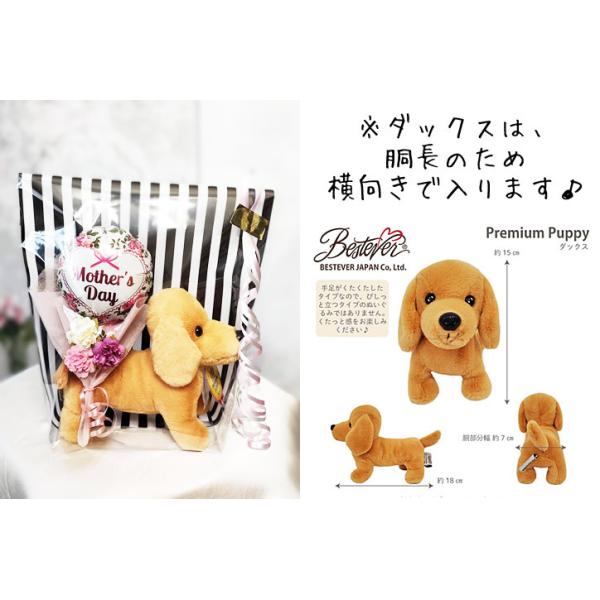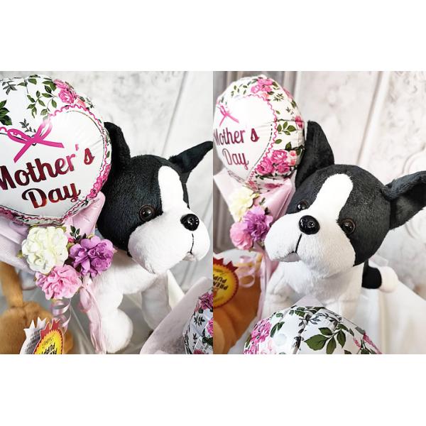 母の日のプレゼントに犬のぬいぐるみとかわいいミニ花束バルーン