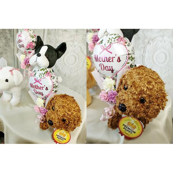 母の日 花 プレゼント 花束 カーネーション 犬 ボストンテリア ブーケー パグ トイプードル ラヴィアンローズ 母の日ミニバルーン花束付プレミアムパピーセット