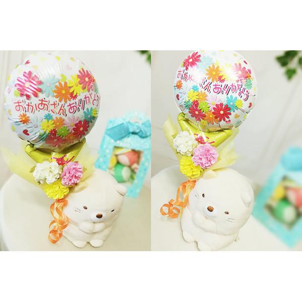 母の日のプレゼントにすみっコぐらしのぬいぐるみと花束バルーン