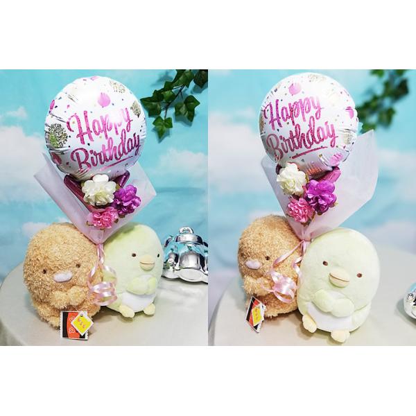 すみっコぐらし 誕生日 プレゼント ブーケ しろくま ねこ とかげ とんかつ ぬいぐるみ 誕生日ピンクドット ミニバルーン花束付すみっコぐらしSペア