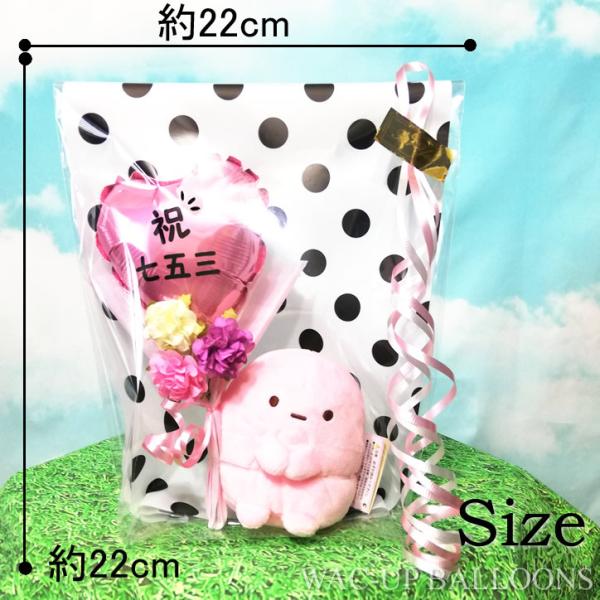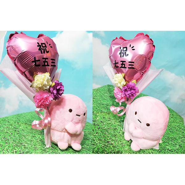 七五三のお祝いにすみっコぐらしのぬいぐるみと花束バルーン電報