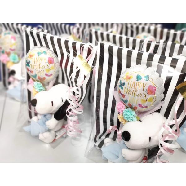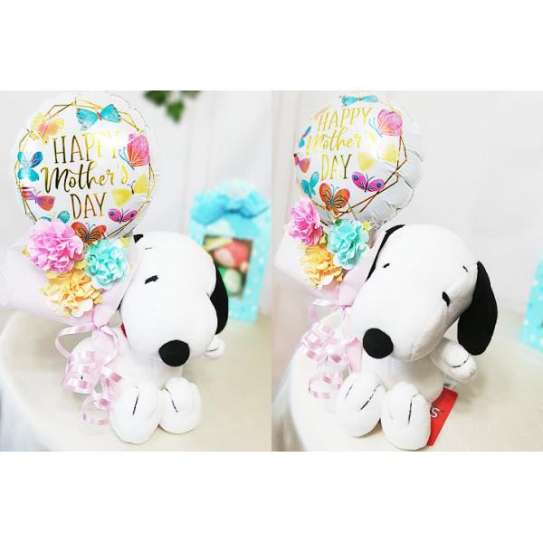 母の日のプレゼントにバルーンと花束付スヌーピーのぬいぐるみ