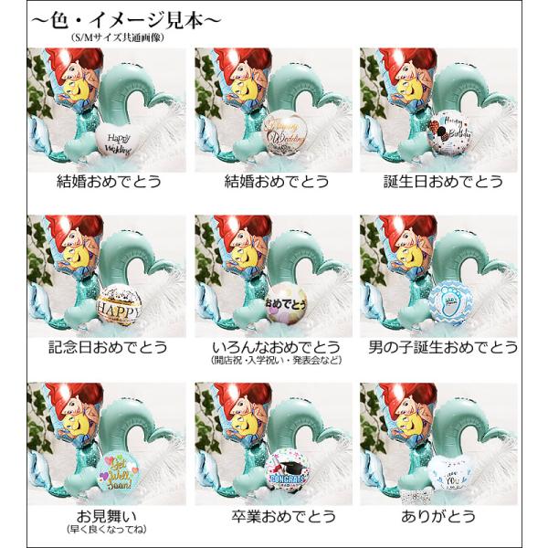 パソコンからは、このページ下、スマホからは、「商品情報をもっと見る」をクリックして、「選択バルーン一覧」の画像リンクをクリックして一覧のページからお好きなバルーンを選んで、本商品と一緒に注文して下さい。