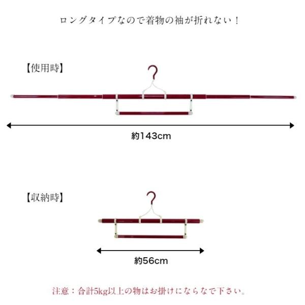 長尺 和装はんがー 2本 えんじ色 着物ハンガー 長尺タイプ ロングハンガー 幅約143cm きものハンガー 長め 折り畳み 折りたたみ 伸縮式 帯掛け 日本製