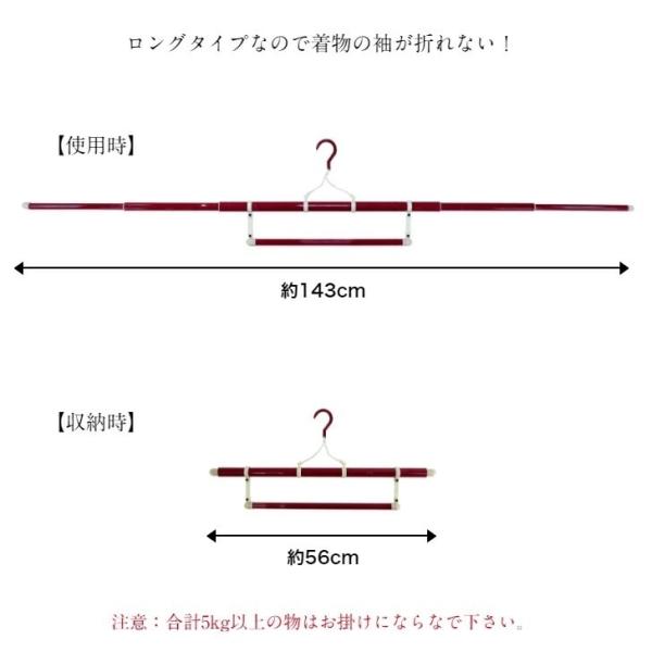 長尺 和装はんがー 3本 えんじ色 着物ハンガー 長尺タイプ ロングハンガー 幅約143cm きものハンガー 長め 折り畳み 折りたたみ 伸縮式 帯掛け 日本製