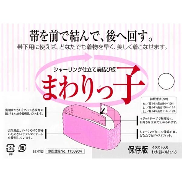 まわりっ子 S M L LL シャーリング仕立前結び板 使い方イラスト付き 一人で帯結びが出来る 前板 伊達締め 帯結び 和装小物 まわりっこ 日本製